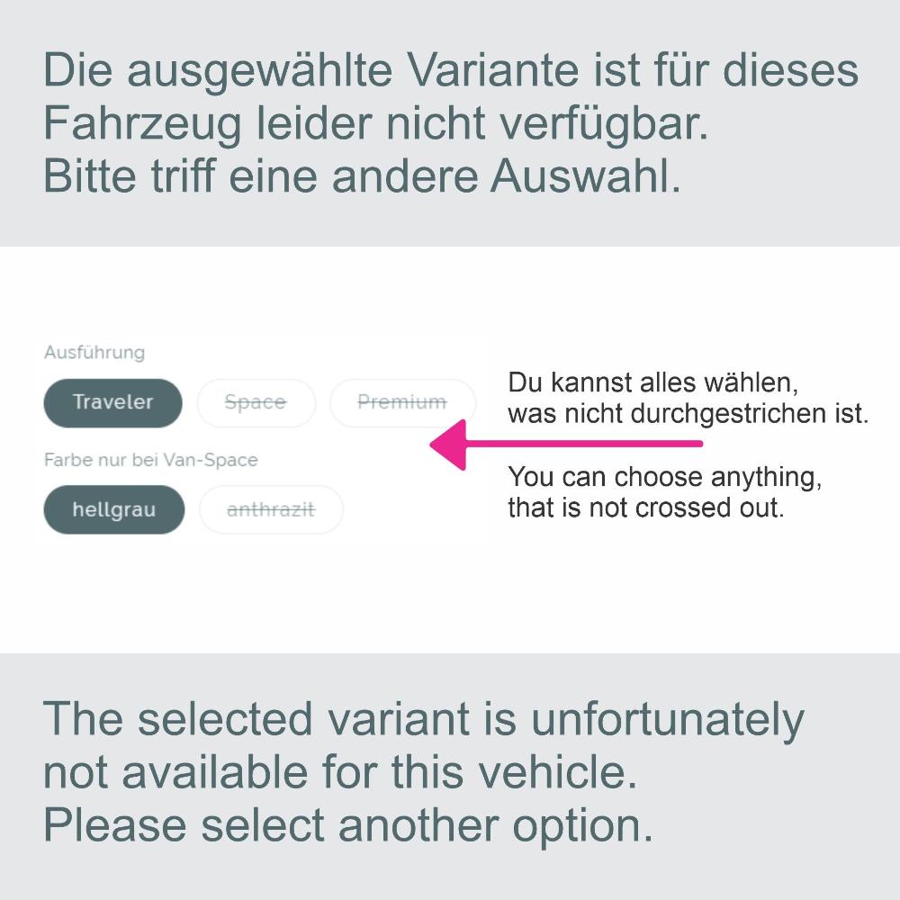 Unsere Produkte werden speziell für bestimmte Fahrzeuge und Camper-Modelle entwickelt (z. B. VW California, Marco Polo, Nugget). Auf der Produktseite findest du die genaue Modellkompatibilität.