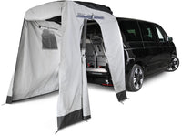 Travel tents are hung under the tailgate and secured with Velcro strips.