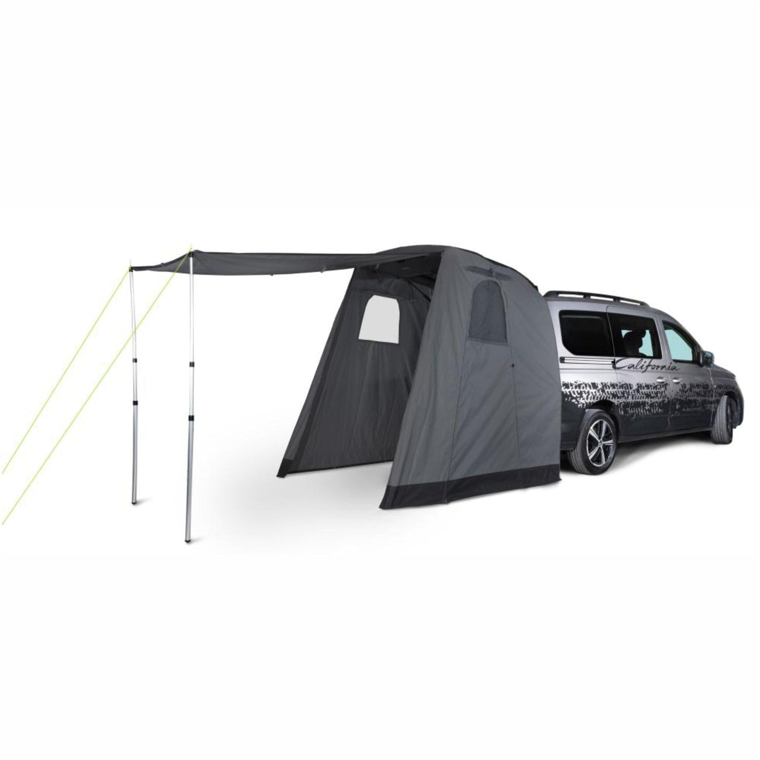 Les tentes de voyage sont accrochées sous le hayon et sécurisées avec des bandes Velcro.
